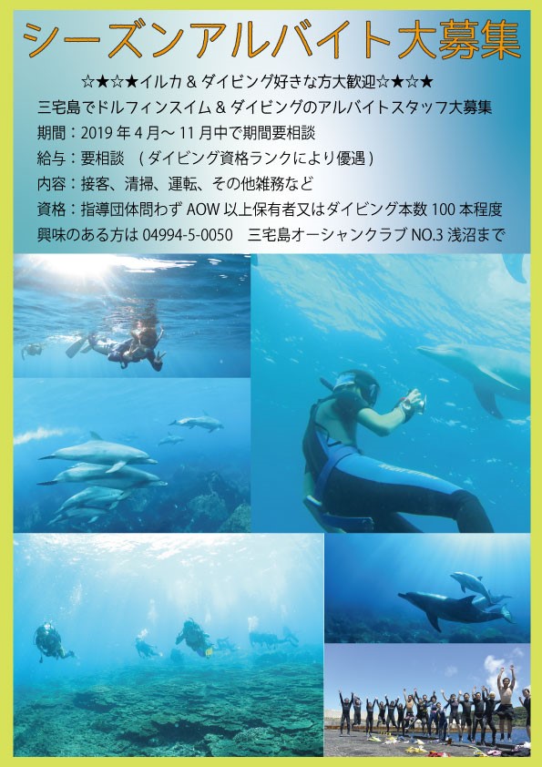 三宅島オーシャンクラブNumber3では、ダイビング&ドルフィンスタッフを募集しています。